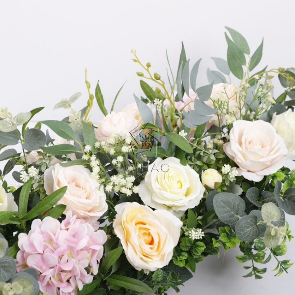 Silk Peony Hydrangea Flower Table Runner Artificial Leaves Flower Wall Panels Flower Panel Backdrop Wall for Wedding Decoration