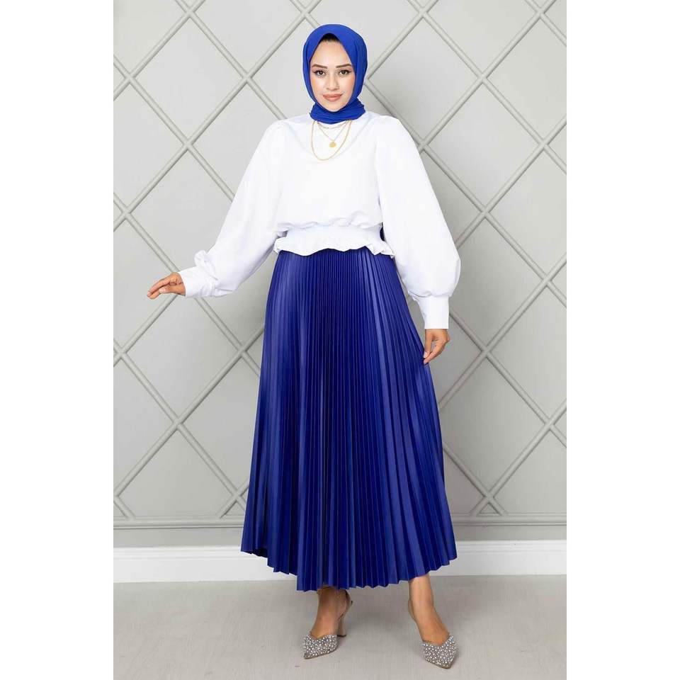Silk Pleated Hijab Midi Skirt with Elastic Waistband Floral Digital Print and Sequined Decoration Breathable Long Boy Style