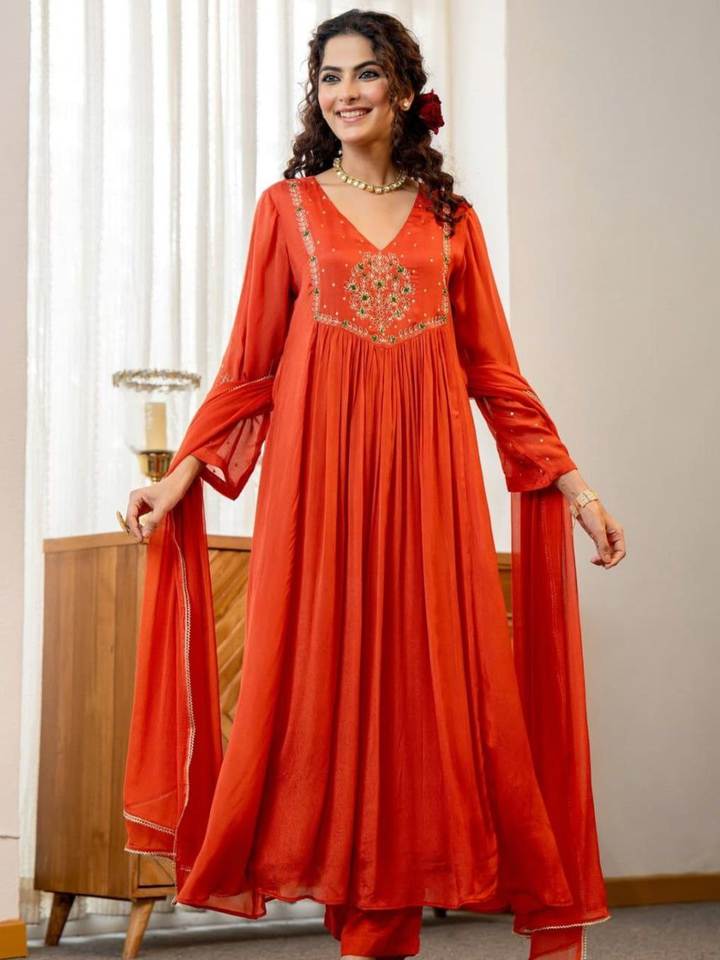 Silk Three Piece Ethnic Suit with Embroidered Top and Matching Dupatta Elegant Women Kurti Pant Set 45 Inch Length Teal