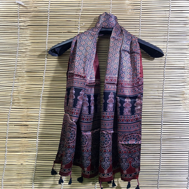 High Quality Modal Silk Pashminas Long Winter Wrap Stole Gorgeous Ajrakh Prints Wholesale Traditional Shawls Scarves Woven