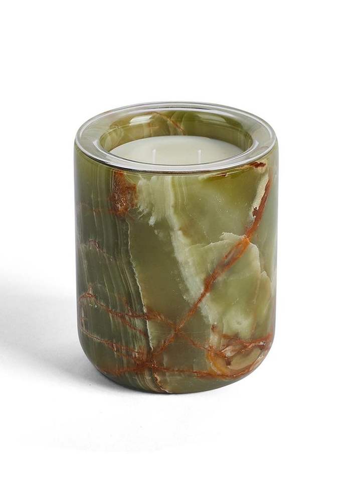 Silk screen printed candle jar made of premium natural marble perfect for romantic setups and luxury interior themes