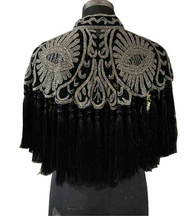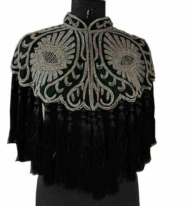 Silky Silk Women's Cape Sexy Attractive Geometric Embroidered Beauty Designer for Party Wear Hand Beaded Breathable Free Size
