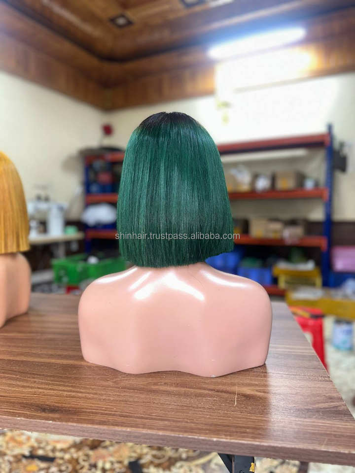 Silky Straight Bob Human Hair 2X6 Closure Wig Ombre Colore Human Hair Black Green Natural Human Hair Wigs