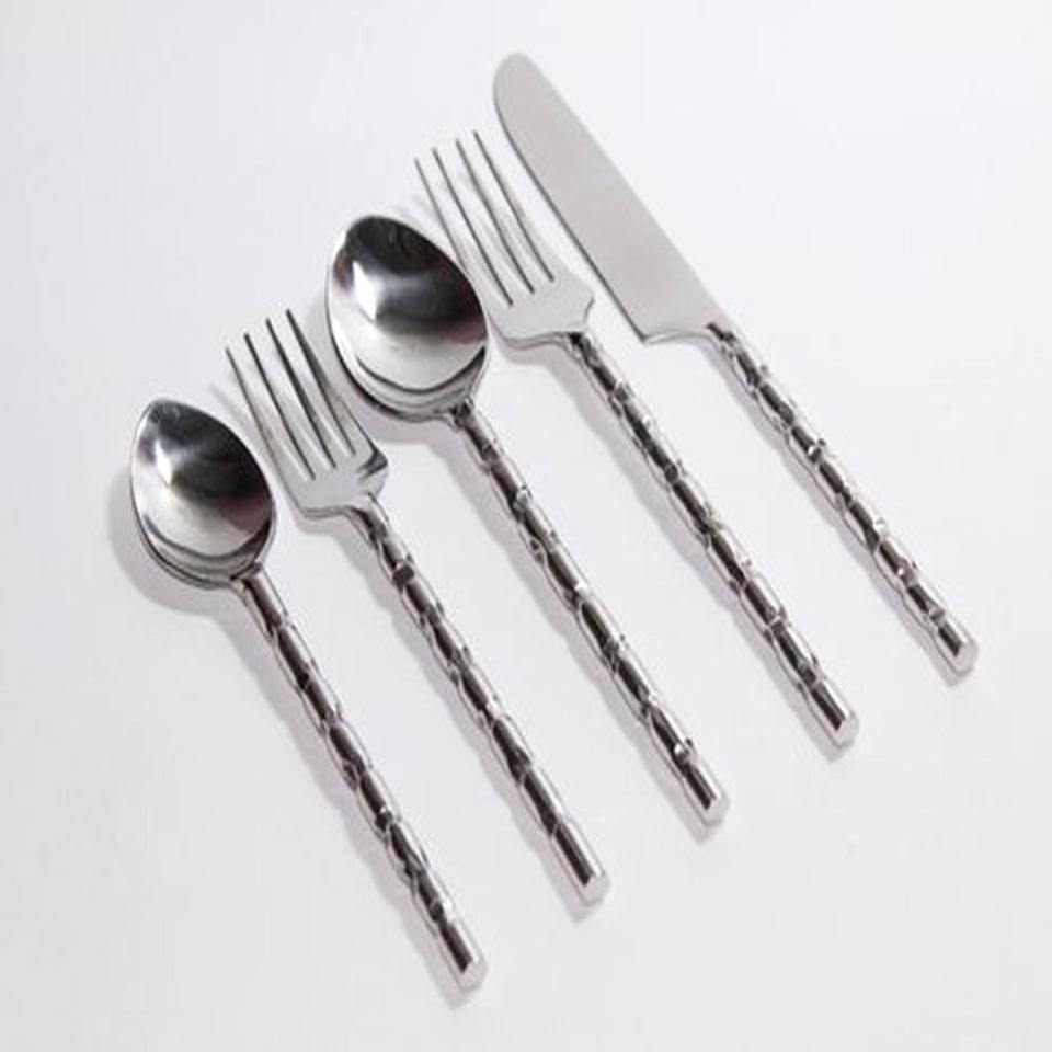 Silver Aluminum Classy Handle Unbreakable Long Handmade Handle Flatware Set Stainless Steel Cutlery Set