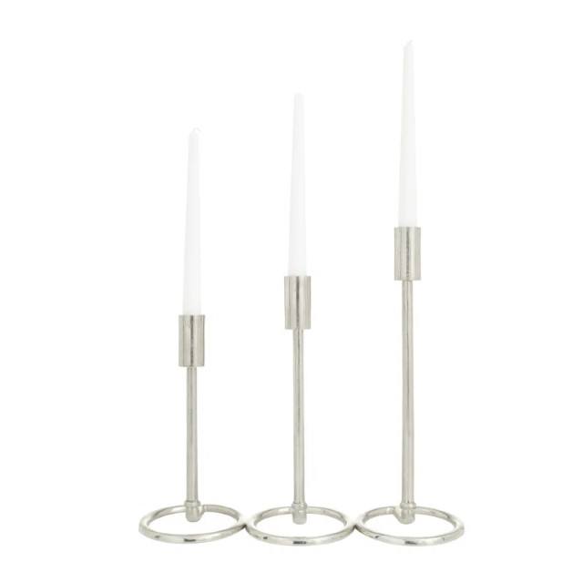 Silver Aluminum Tapered Candle Holder with Ring Bases is a set of three candle holders of varying heights