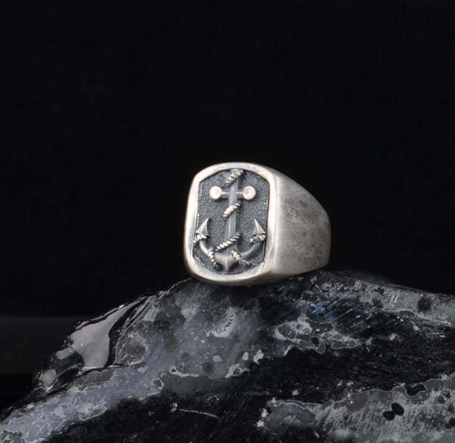 Silver Anchor Ring Handmade Sailor Anchor Oxidized Silver Captain Ring