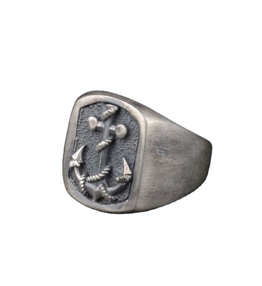 Silver Anchor Ring Handmade Sailor Anchor Oxidized Silver Captain Ring Marine Cast Steel Ship Boat Hall Type Anchor for Marine