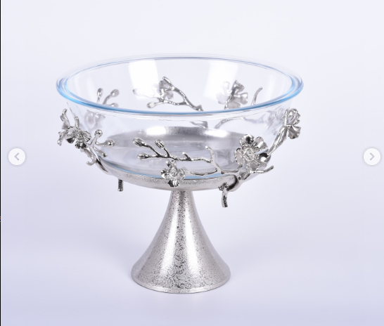 Silver And Glass Metal Floral Nut Dishes Severs For Cookie And Cake Dishes And Fruit Bowls Serving Trays Bowls Trays Tier Stands