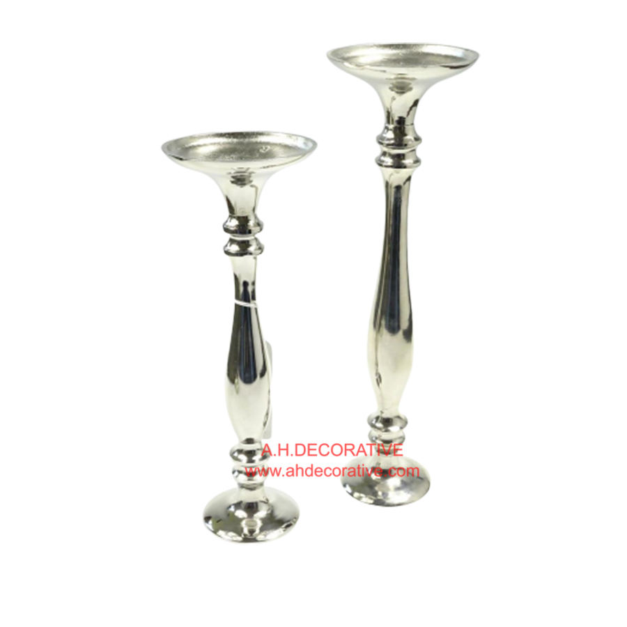 Silver Antique Decorative Candle Pillar Holder for Home Decoration Unique Design Silver Plated Aluminum Handmade Candle Holder