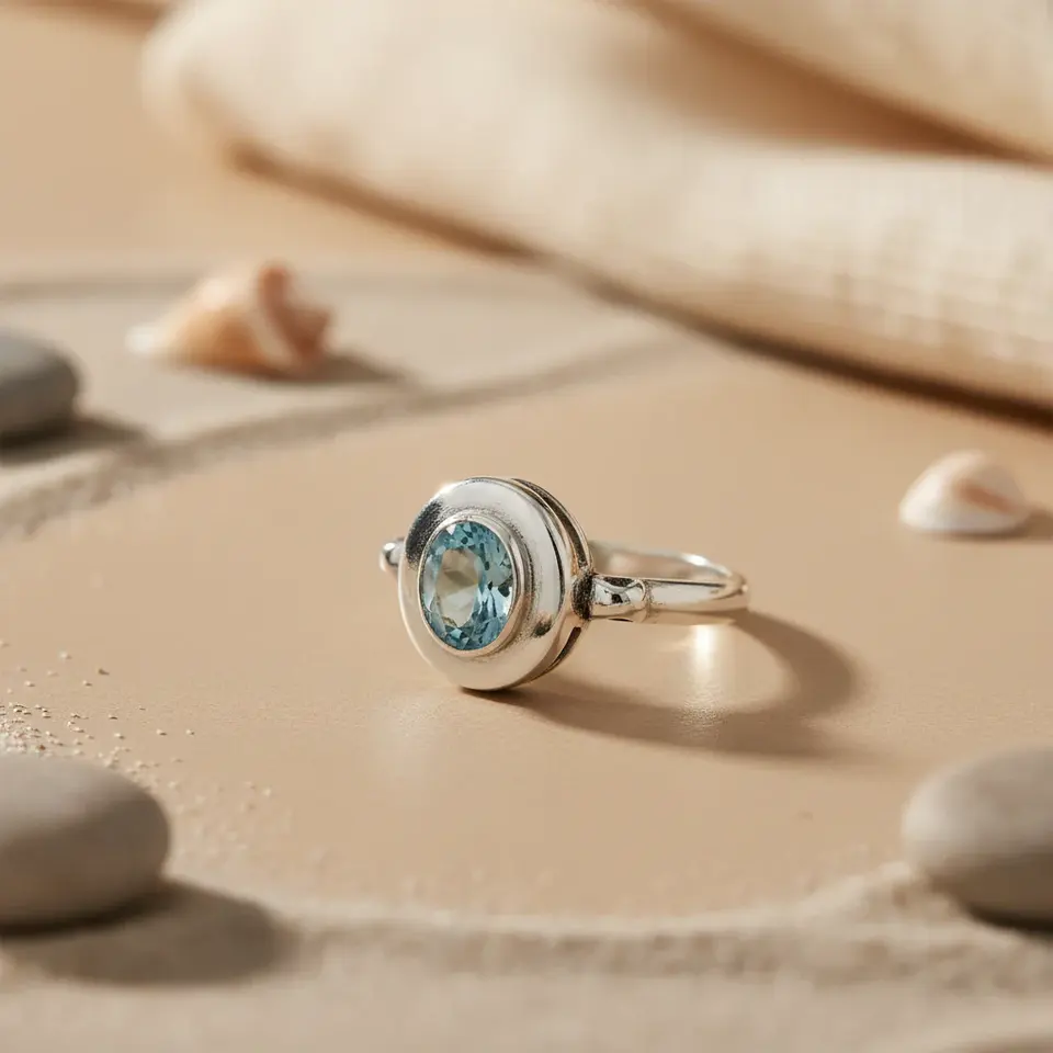 Silver Aquamarine Statement Ring for Women Blue Topaz Oval Cut Gemstone Rhodium Plated Platinum Elegant Blue Gemstone Ring