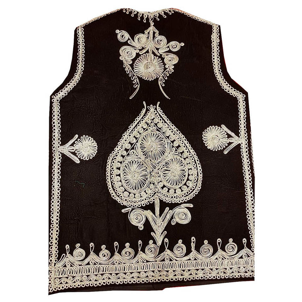 Silver Black Color Waistcoat Afghan Traditional Hand Made Embroidered Waist Coat for Men Traditional Handmade Afghan Waistcoat