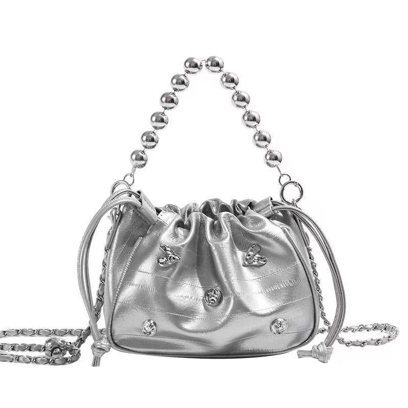 Silver Bowknot Ruched Handbag Top Handle and Crossbody Shoulder Bag