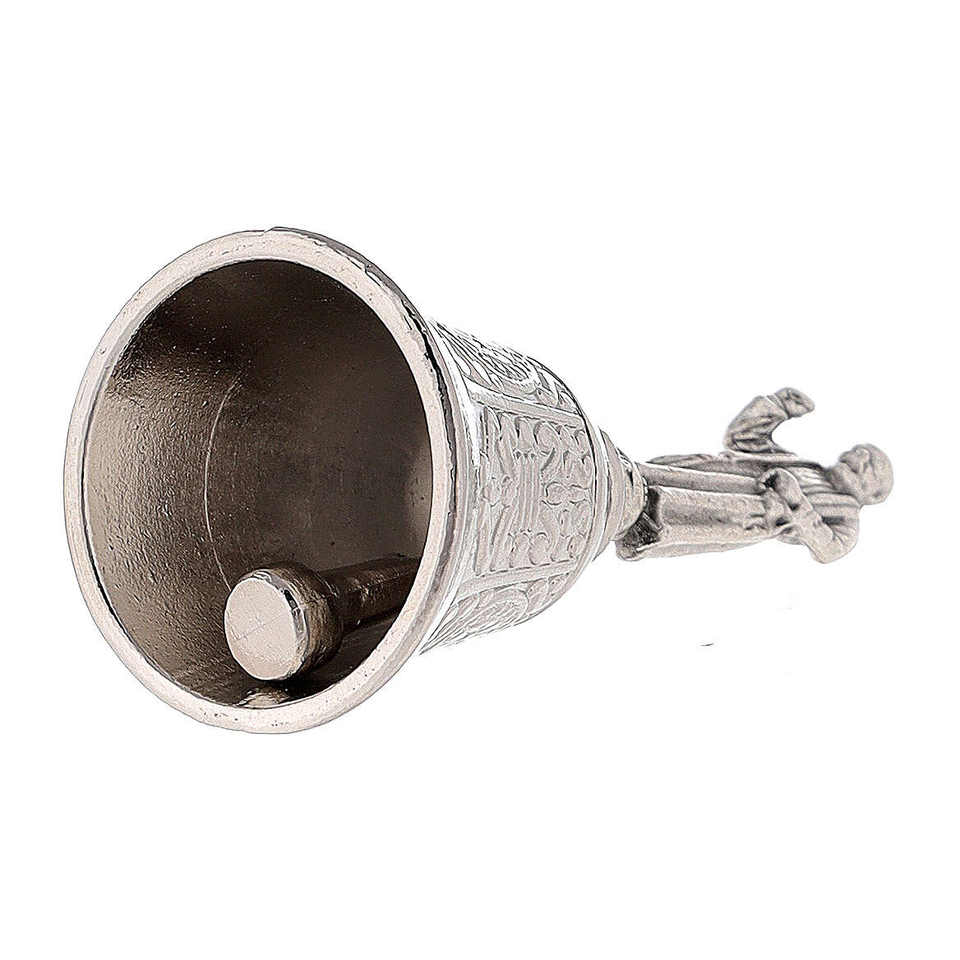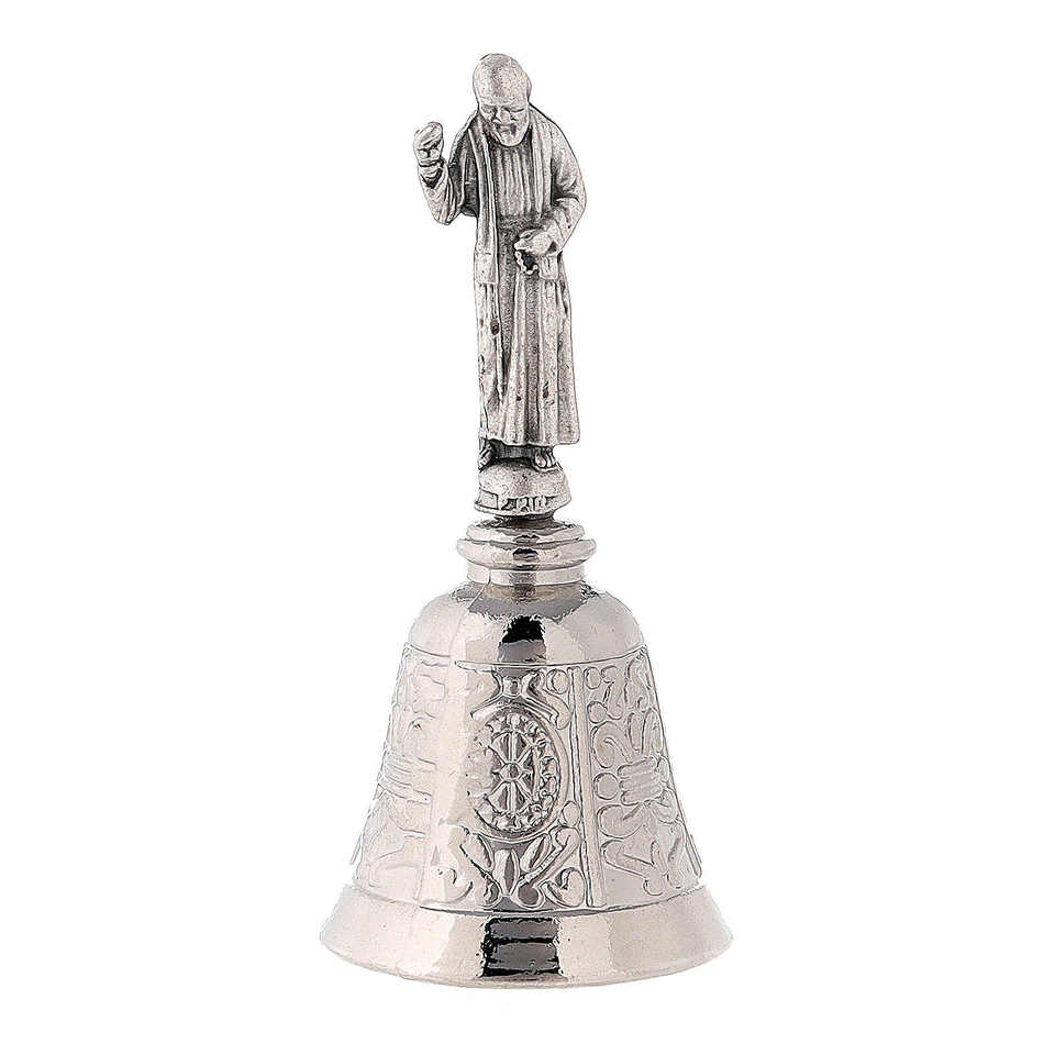 Silver Brass Bell with Handle Featuring Statue of Padre Pio Religious Prayer Bell for Church Worship Temple Decor Spiritual Use