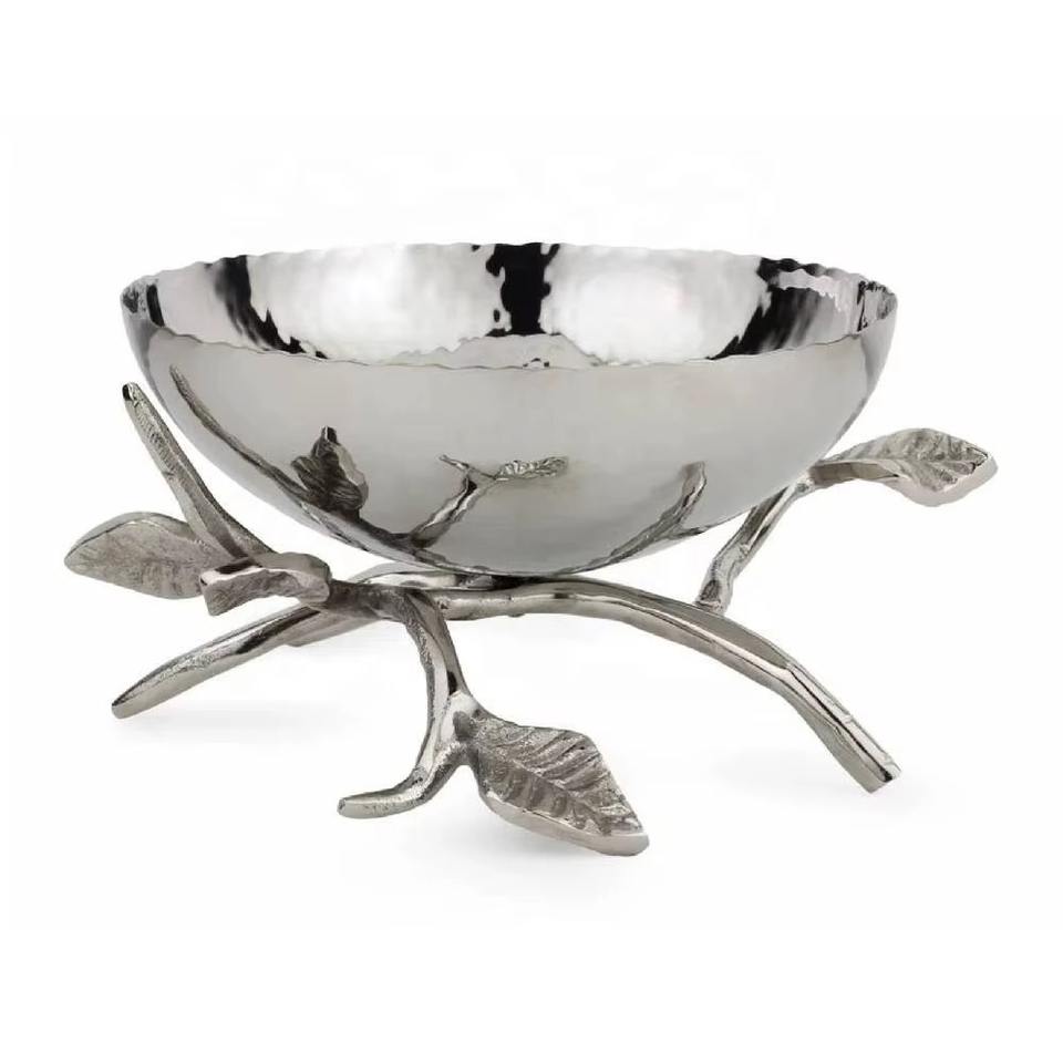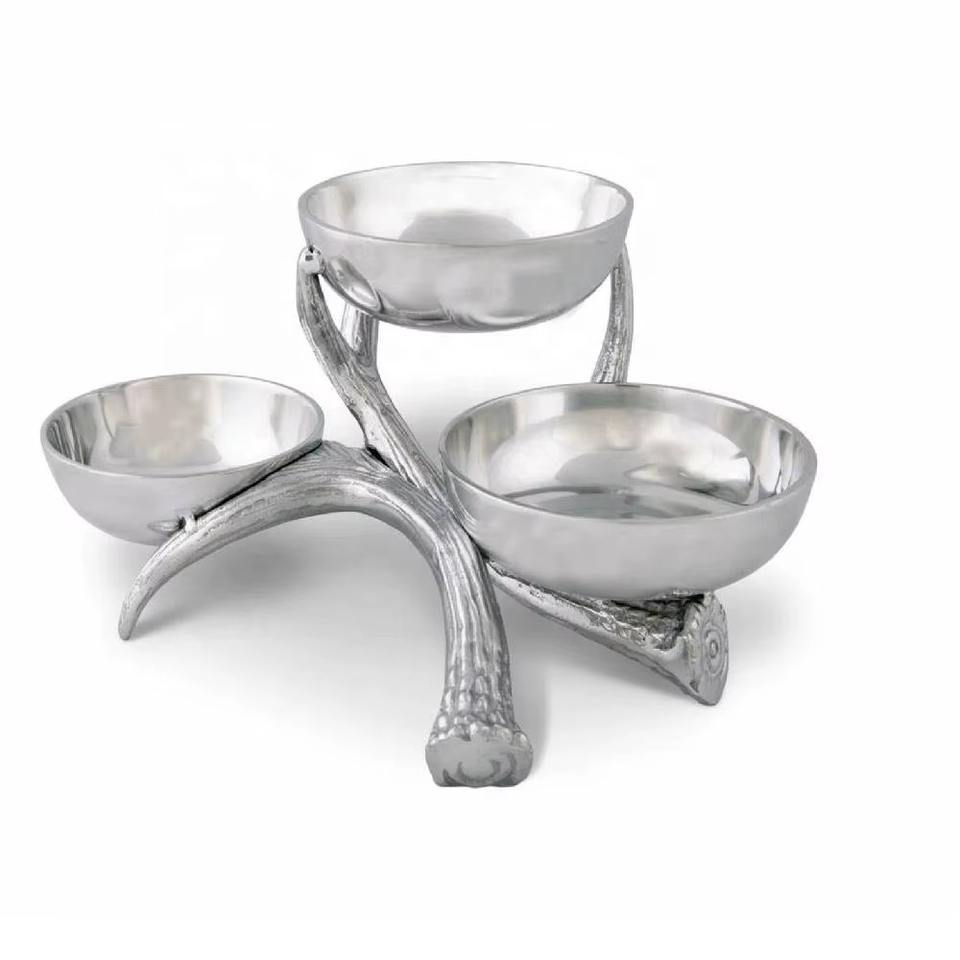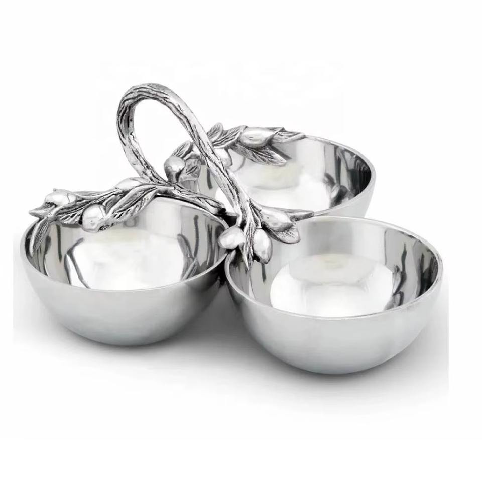 Silver Brass Three Section Decorative Bowl Elegant Handcrafted Tabletop Serveware For Home Dining Room And Living Space Display