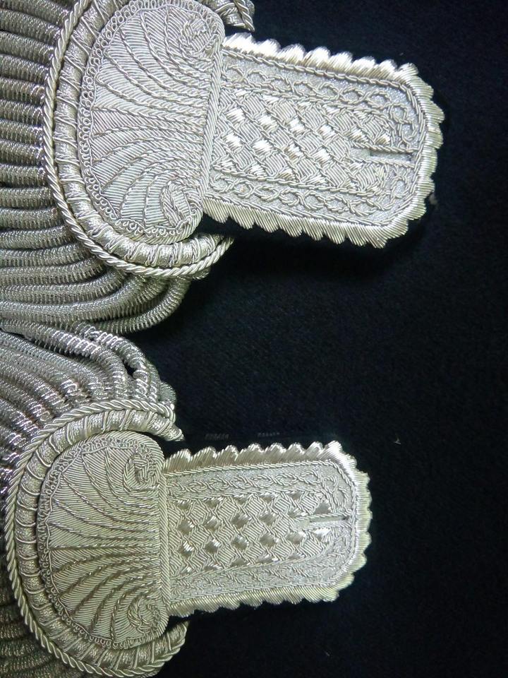 Silver Bullion Embroidered Top Ranking Epaulettes Shoulder Board Ceremonial Uniform 100% Cotton Wire White Fringe Tassels