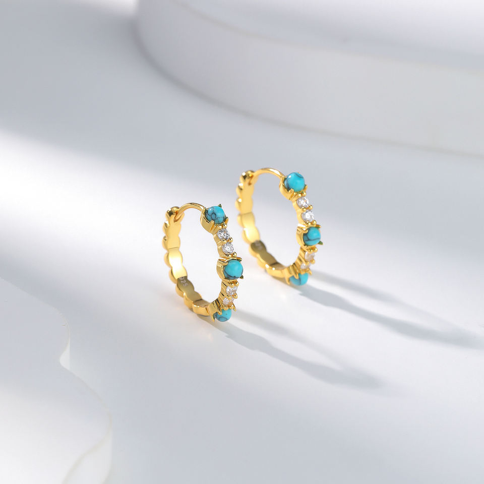 Silver City 18K Gold Plated 925 Silver Earrings Set Turquoise CZ Huggie Hoop Trendy for Girls Gift Party Wholesale