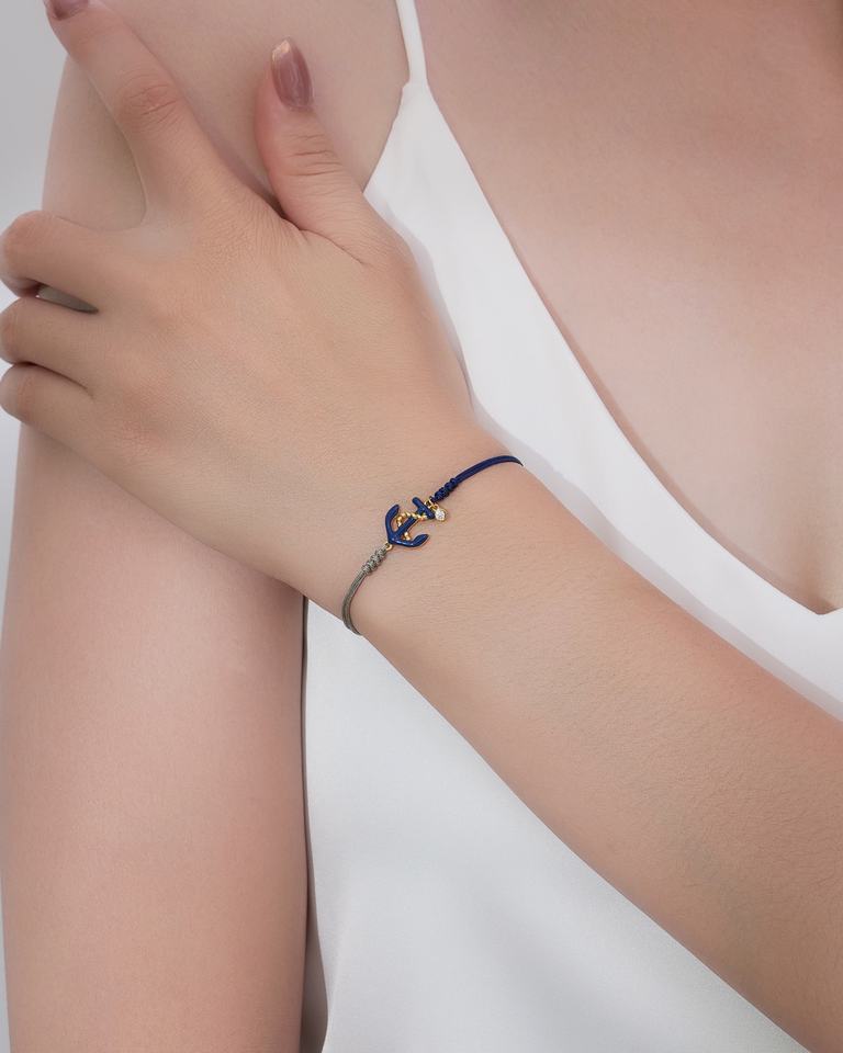 Silver City Minimalist Designer Bracelet 18K Gold Plated Sterling Silver 925 Rope Anchor CZ Charm Fine String Couple Bracelet