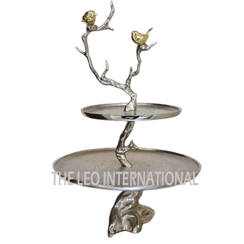 Silver Color Flower Leaf Shape Design Aluminum Metal Wedding Party Banquet Hotel Other Occasion Cake Stand