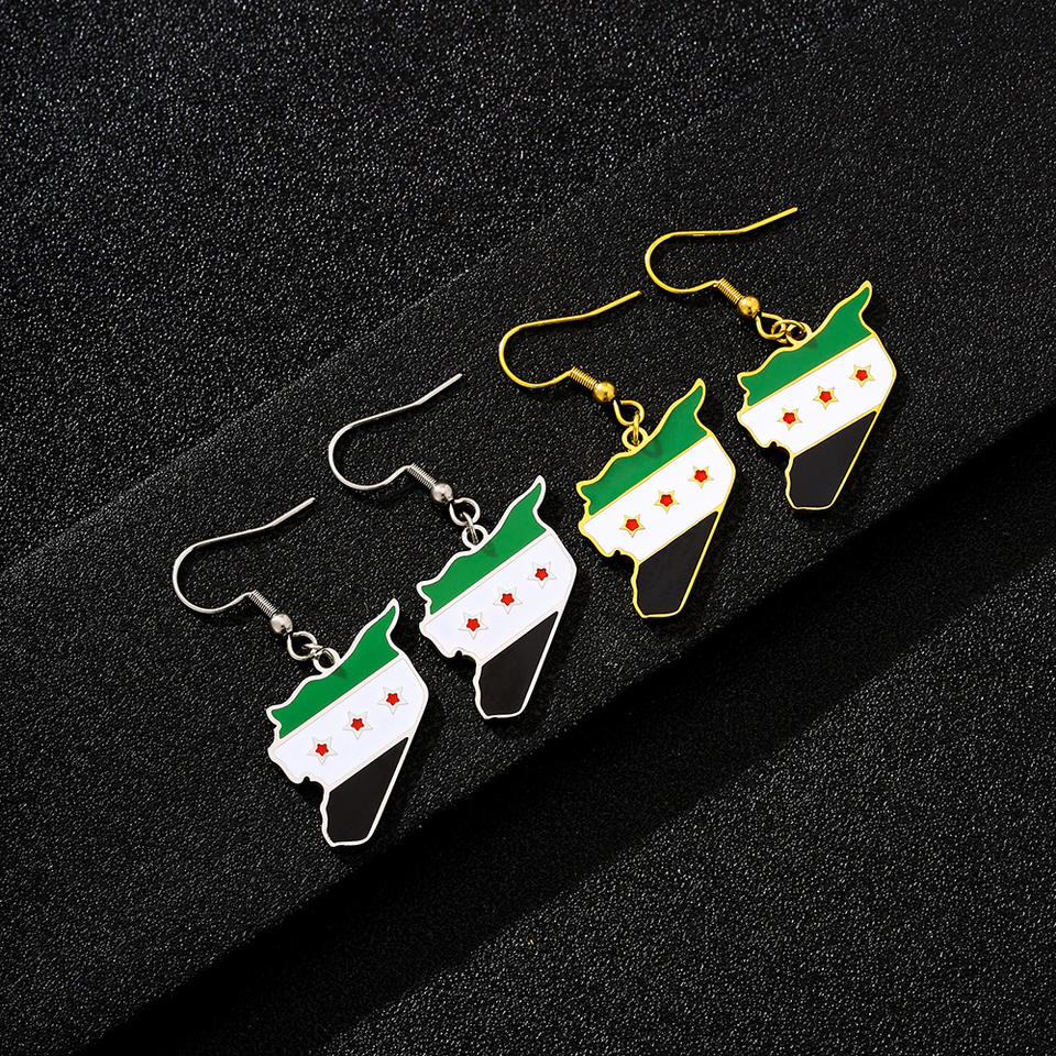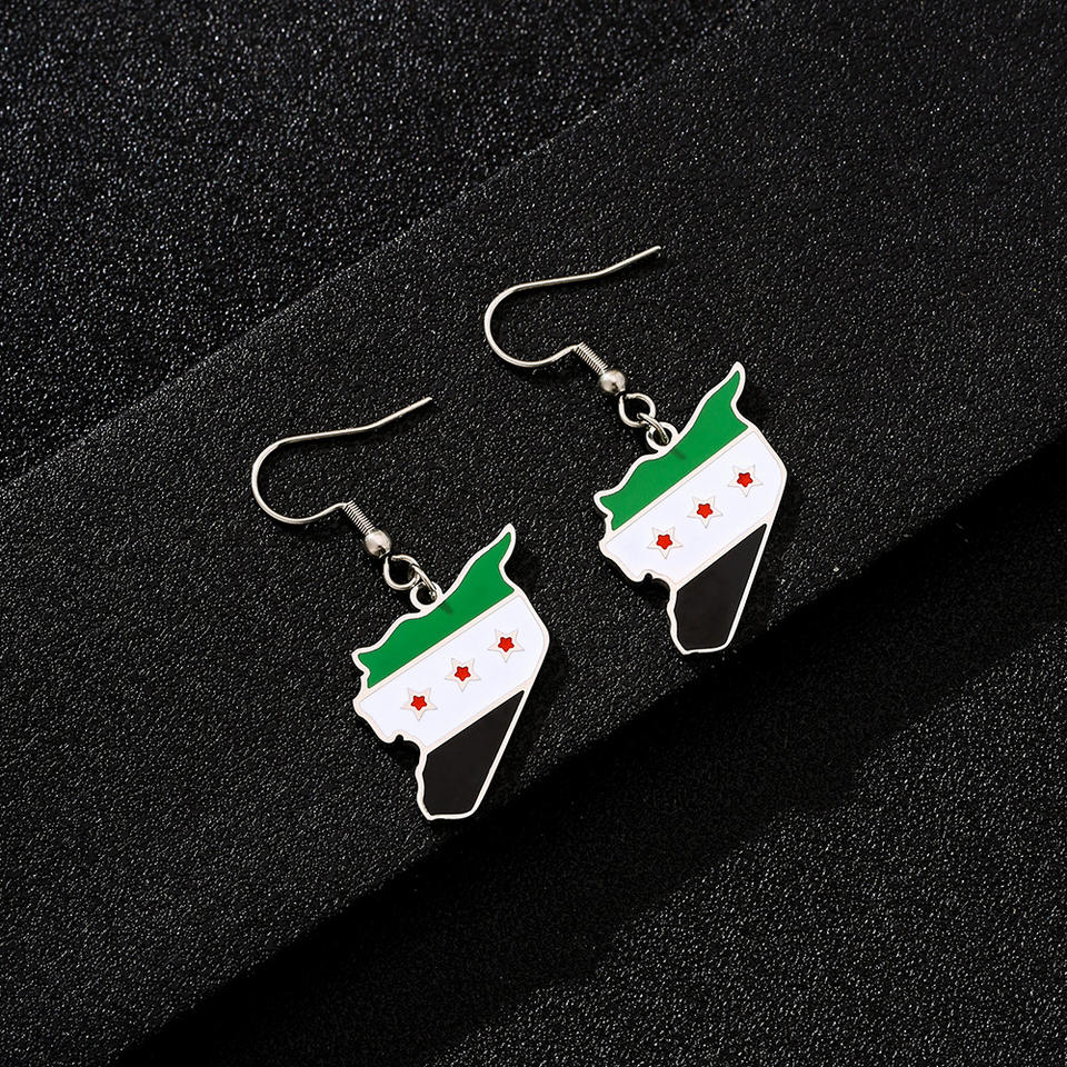 Silver Color Hot Sale New Syria Map Flag Earrings Retro Stainless Steel Drop Oil Pendant Ear Hook Women'S Ear Dendron