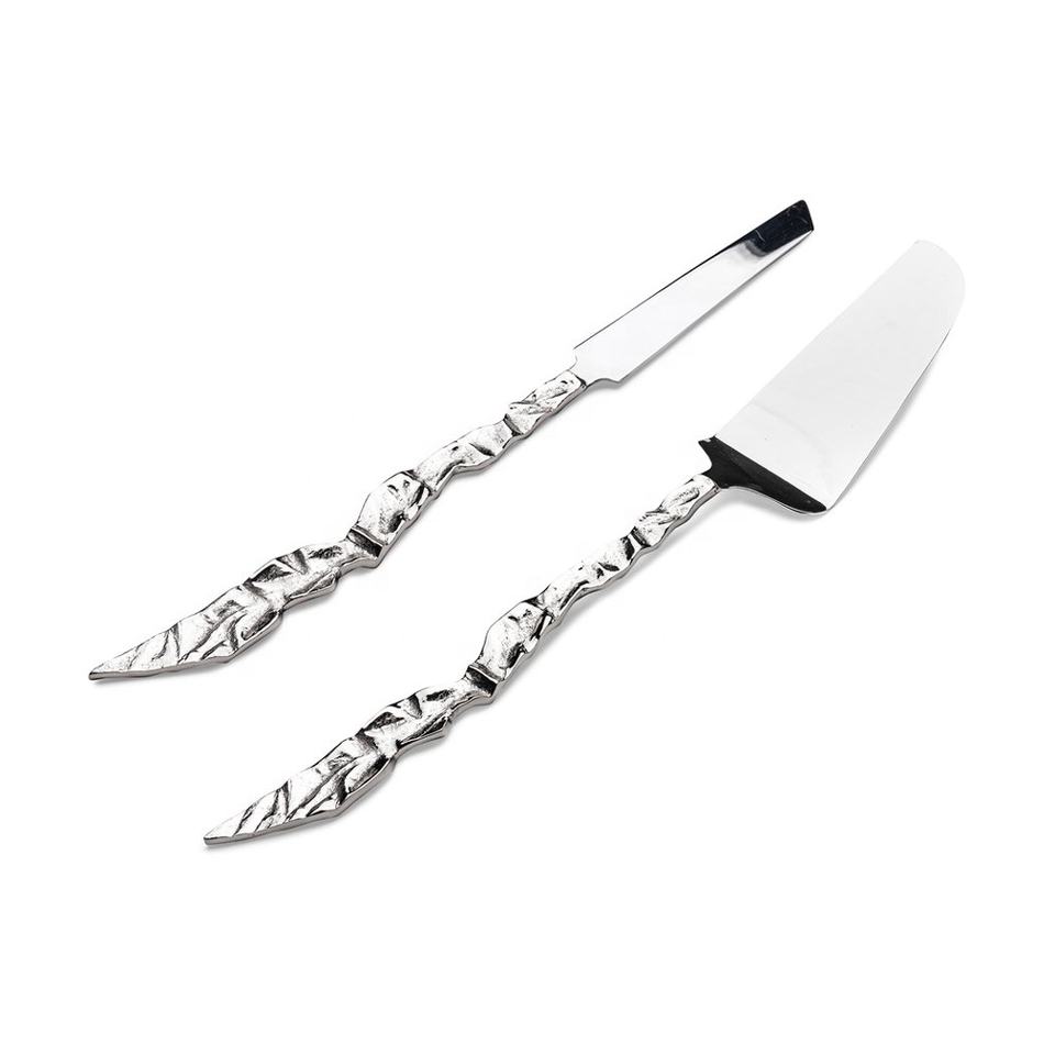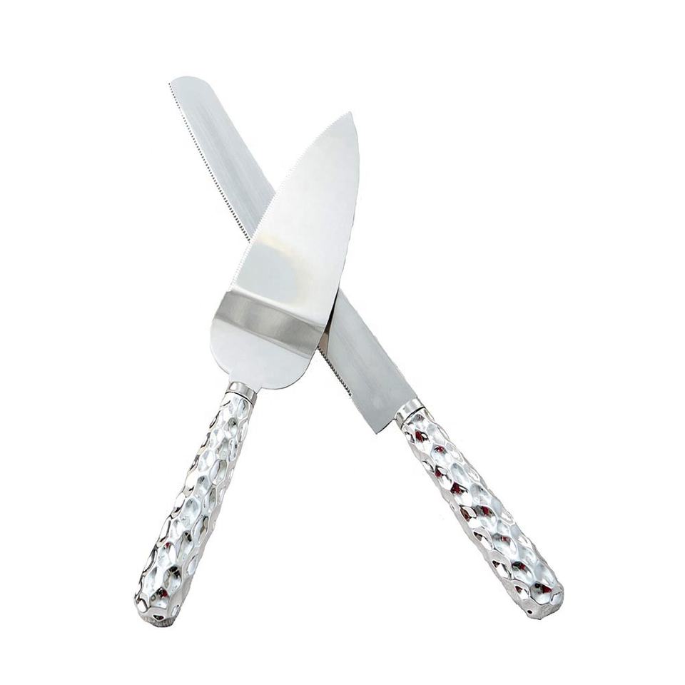 Silver Crush Metal Handmade Long Handle Solid Brass Stainless Steel Tableware Royal Metal Wedding Cake Server Bakeware Cake Tool