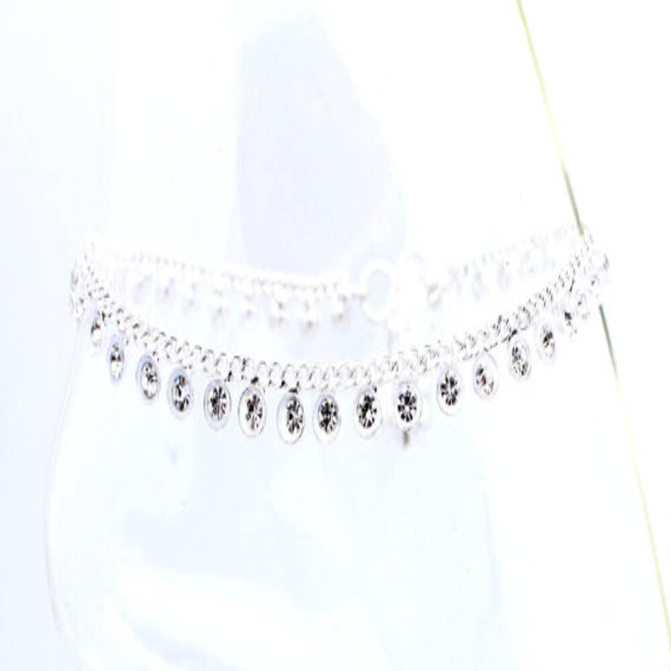 Silver Crystal Anklet Dangle Charm Anklet Jewellery for Women and Girls Wear in Wedding Party, Hldi ,emhendi Wear Anklets