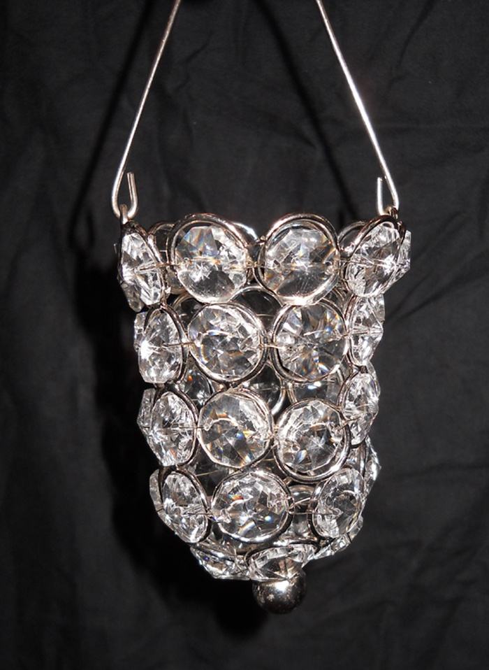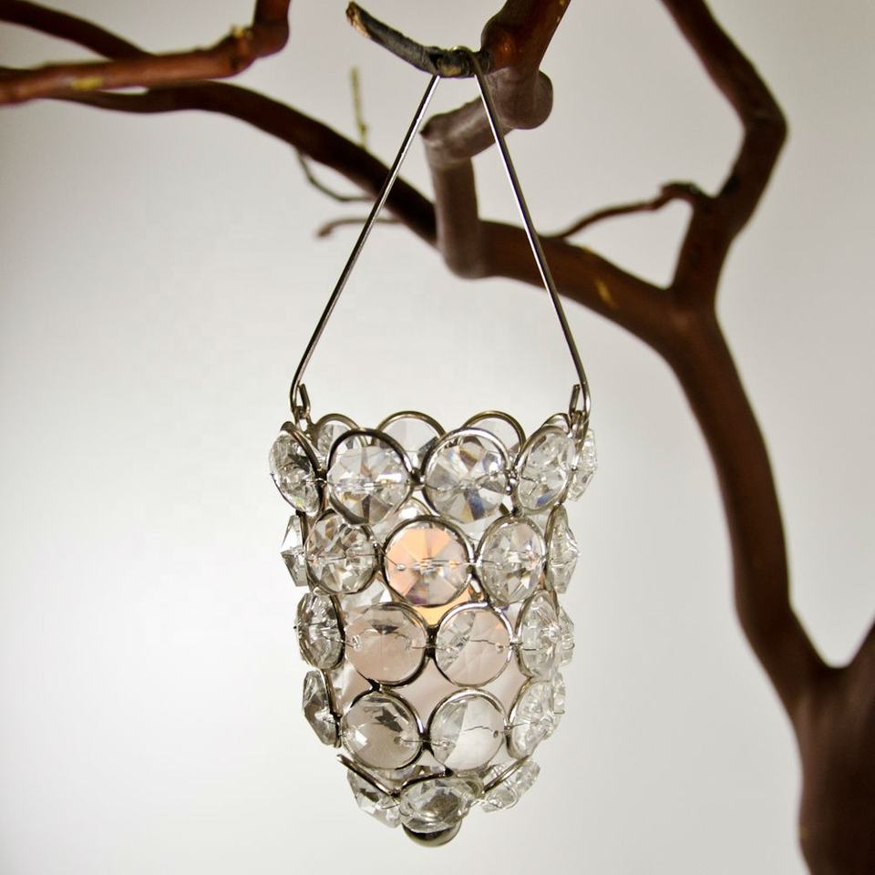 Silver Crystal Beaded Hanging Tealight Candle Holder for Christmas Tree Decor & Wedding Votive Holder