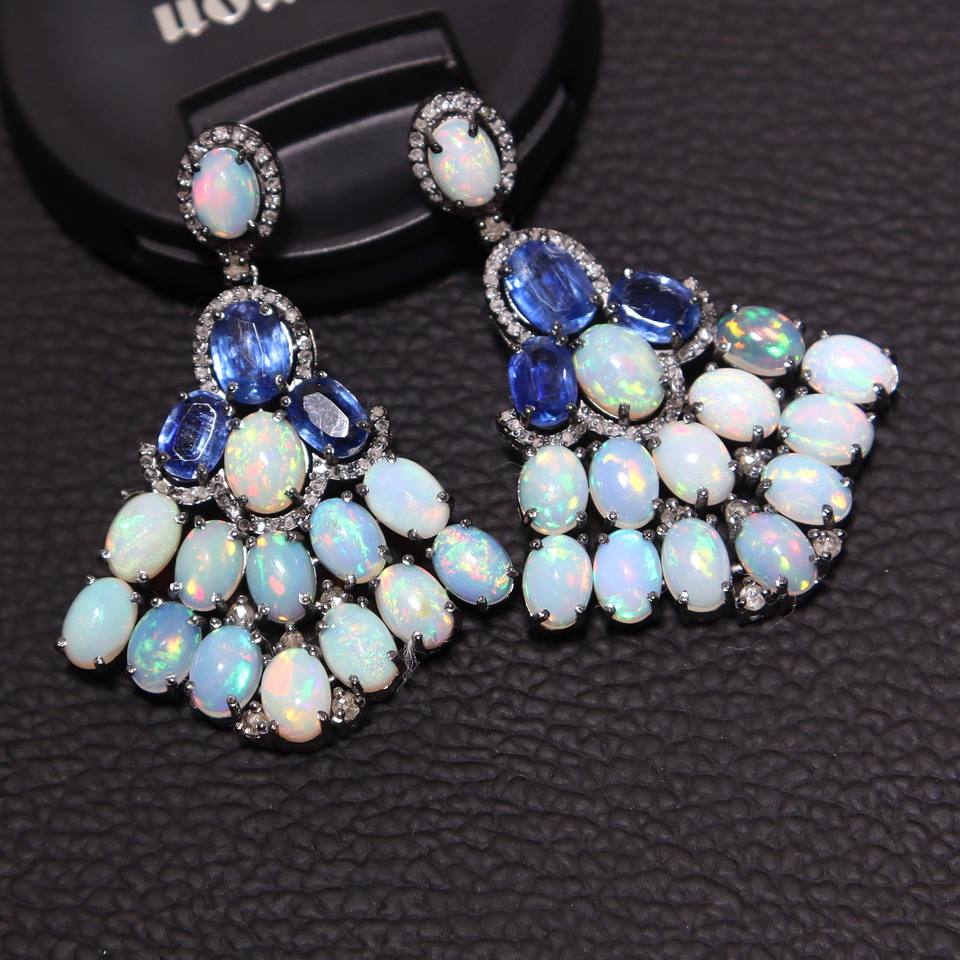 Silver Earring Set Natural Ethiopian Opal & Blue Kyanite Diamond Earring Victorian Jewelry 925 Sterling Silver Jewelry Supplier