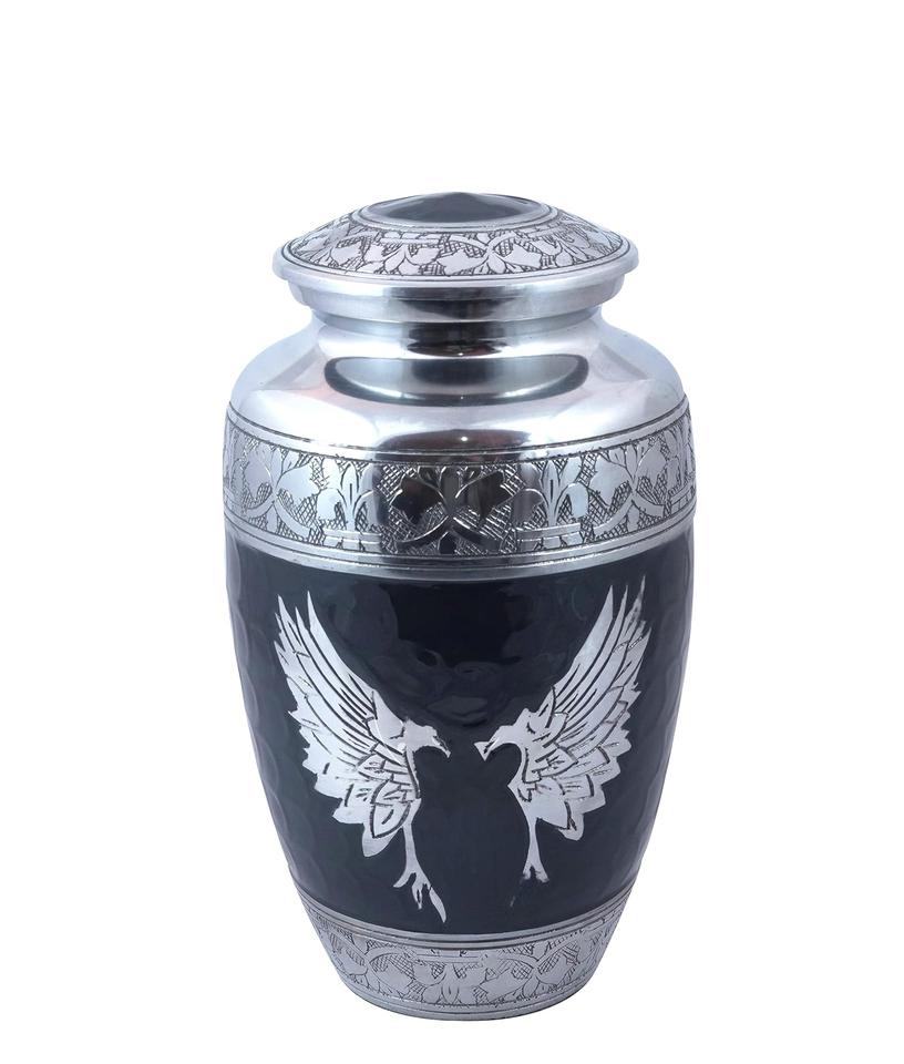 Silver Engraved Cremation Urn for Human Ashes Adult Funeral Urn Handcrafted - Large Burial Urn for Human Ashes Angel Wing-9