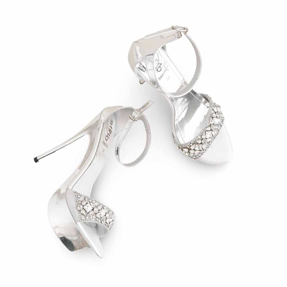 Silver Fancy Bridal Jelly Shoes FN6016 Model Elegant Wedding Sandals