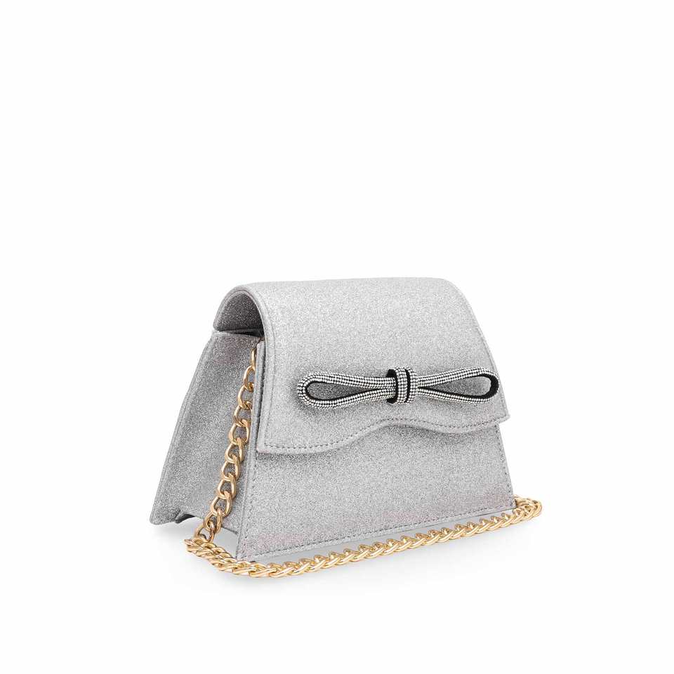 Silver Fancy Clutch P15352 Resin Evening Bag with Diamond Square Marble Pattern Pearl and Chain Decoration Acrylic Lining