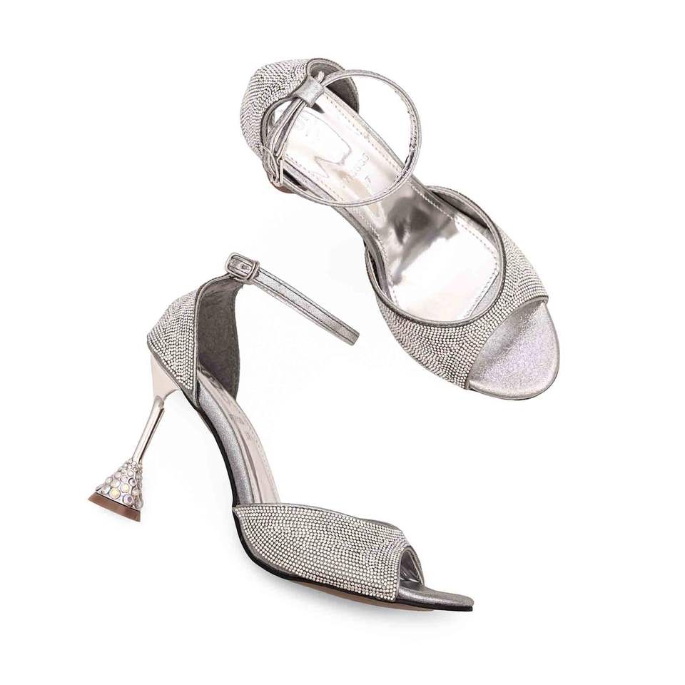 Silver Fancy Heeled Sandal for Bridal Use FN5885 Model