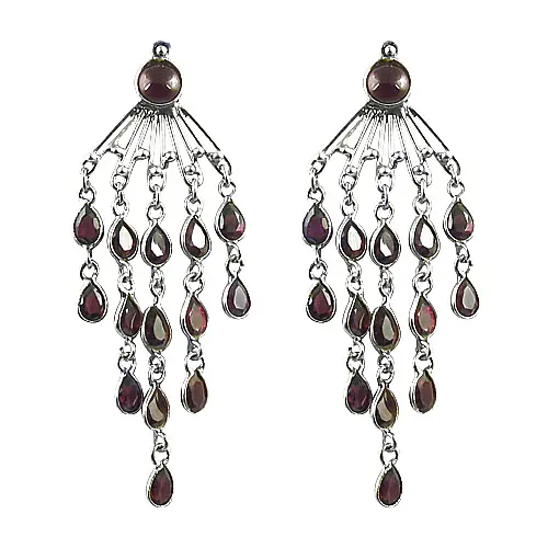 Silver Fashion Chandelier Dangle Drop Earrings with Garnet Elegant Statement Accessory