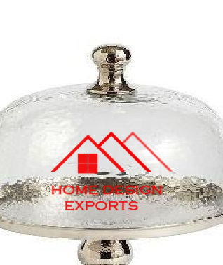 Silver Finished Hot Selling Decorative Glass Dome Cake Stand Decorations Unique 2025 New Design Wooden Table Top cake Stands
