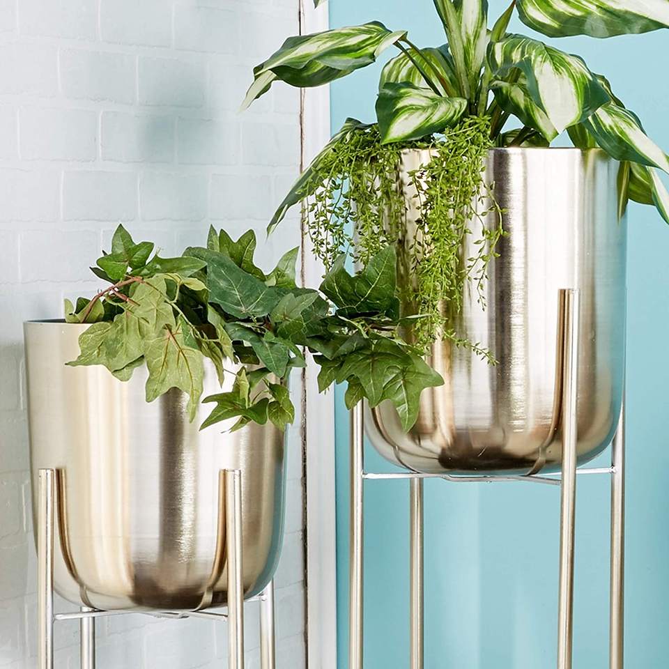 Silver Finished Metal Decorative Indoor/Outdoor Planters with Stand 20 Inches Cute Design Glazed Finish for Home & Garden Use