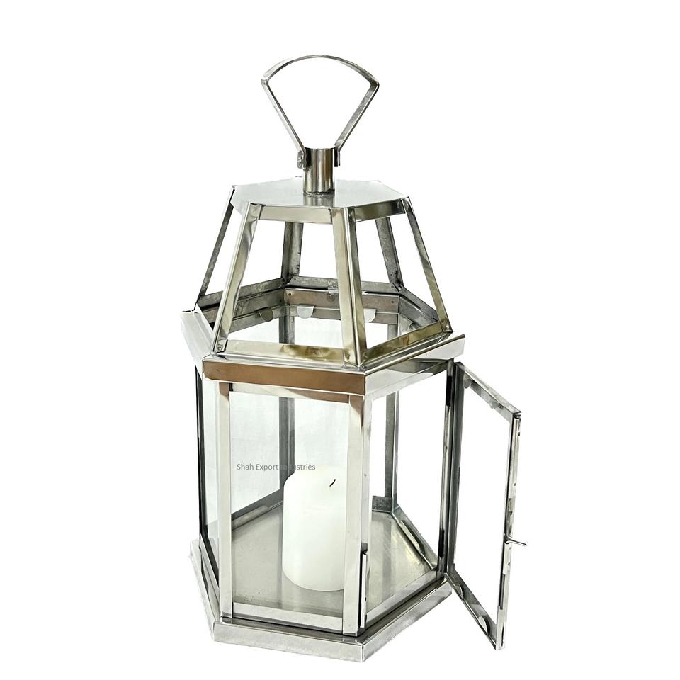 Silver Finished Stainless Steel and Glass Candle Lantern New Design for Home and Christmas Decor Floor Lantern