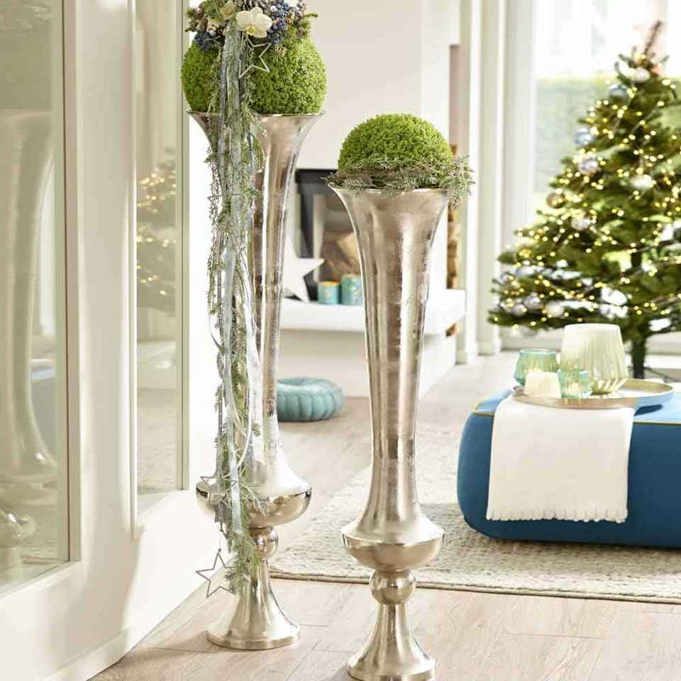 Silver Finishing Tall Aluminum Floor Vase Wedding Decoration Large Flower Vase Metal Trumpet Vase Home Party Celebrate