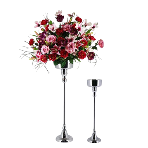 Silver Floor Standing Flower Pot Stand Home Living Room Decoration & Wedding Table Decoration Flower Vase Stand Set of 2