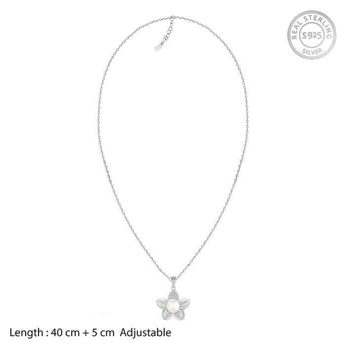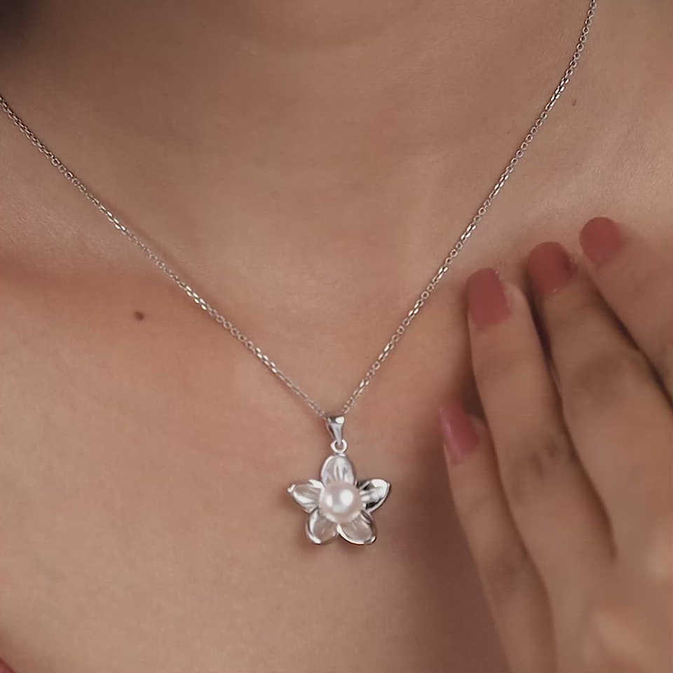 Silver Floral Link Chain Necklace with Pearl Pendant