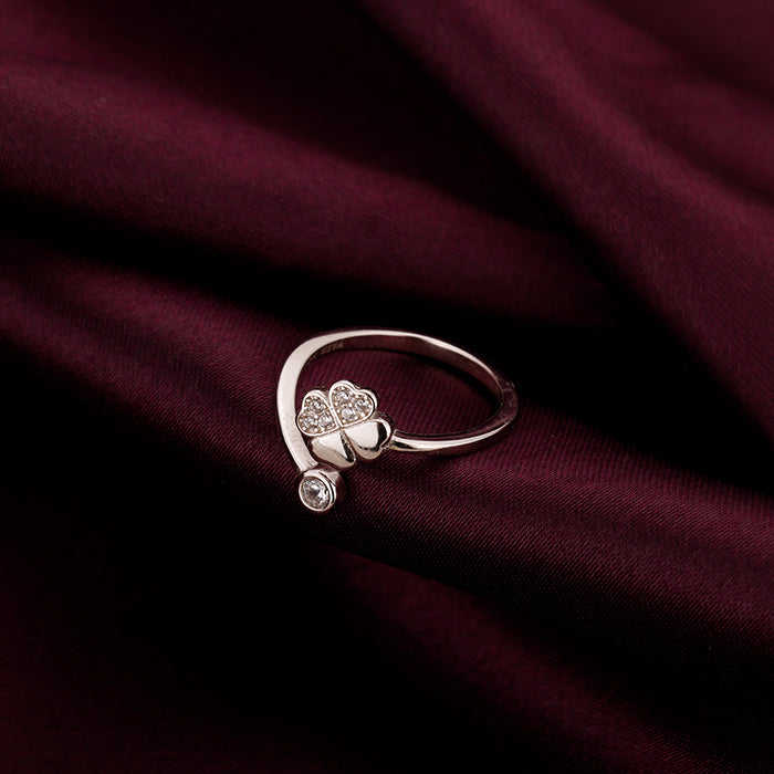 Silver Floret Ring 18K Gold Plated Stainless Steel Cluster Inlay Lovers Number Shaped Princess Cut Diamond Free Size Islam