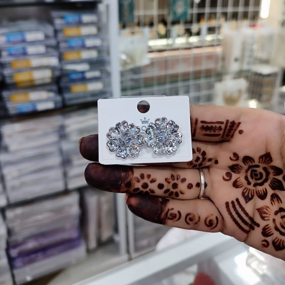 Silver Flower Studs Western Trendy Earring With Gold Plating for Party Look for Womens and Girls