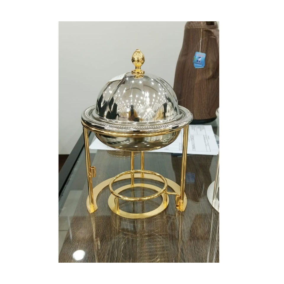 Silver Food Warmer Chafing Dish With Wire Gold Stand Fuel Burner Handmade Hotels and Restaurant Supplies