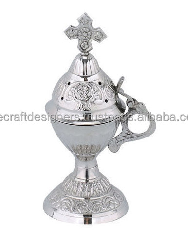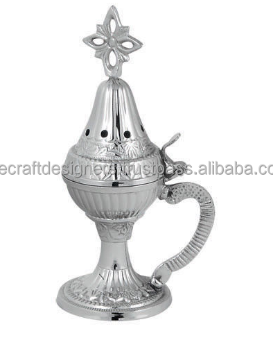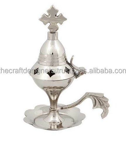 Silver Furnished Engraved Incense Burner Cross on Top Church Festivals Decoration and Good Perfume Smells Diffuser Brass Censer