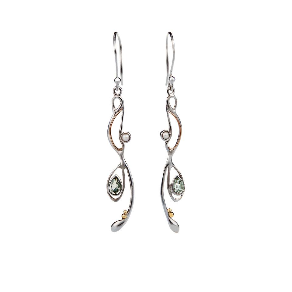 925 Sterling Silver Gemstone Earrings Handmade Trendy Green Amethyst Pearl Dangle Silver Drop Earrings