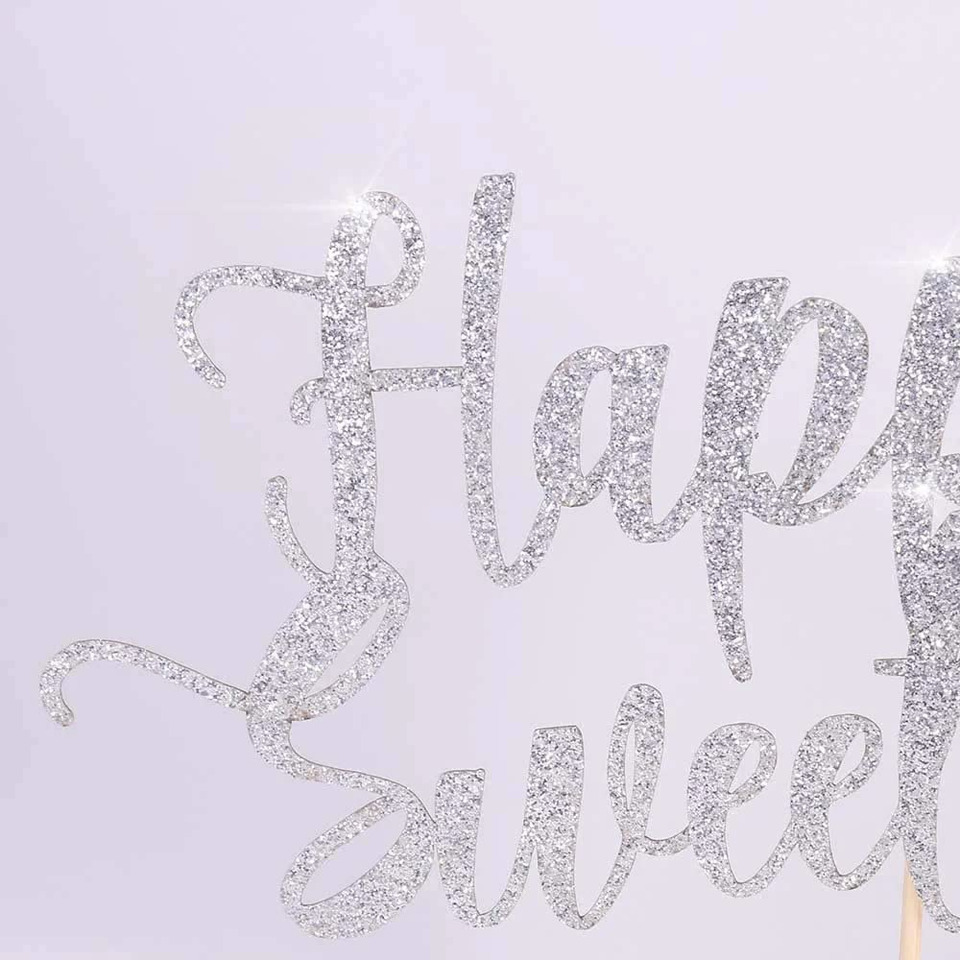Silver Glitter Happy Birthday Cake Topper 6-Inch Bunting Banner Decoration for Birthday Party Cakes and Celebration Supplies