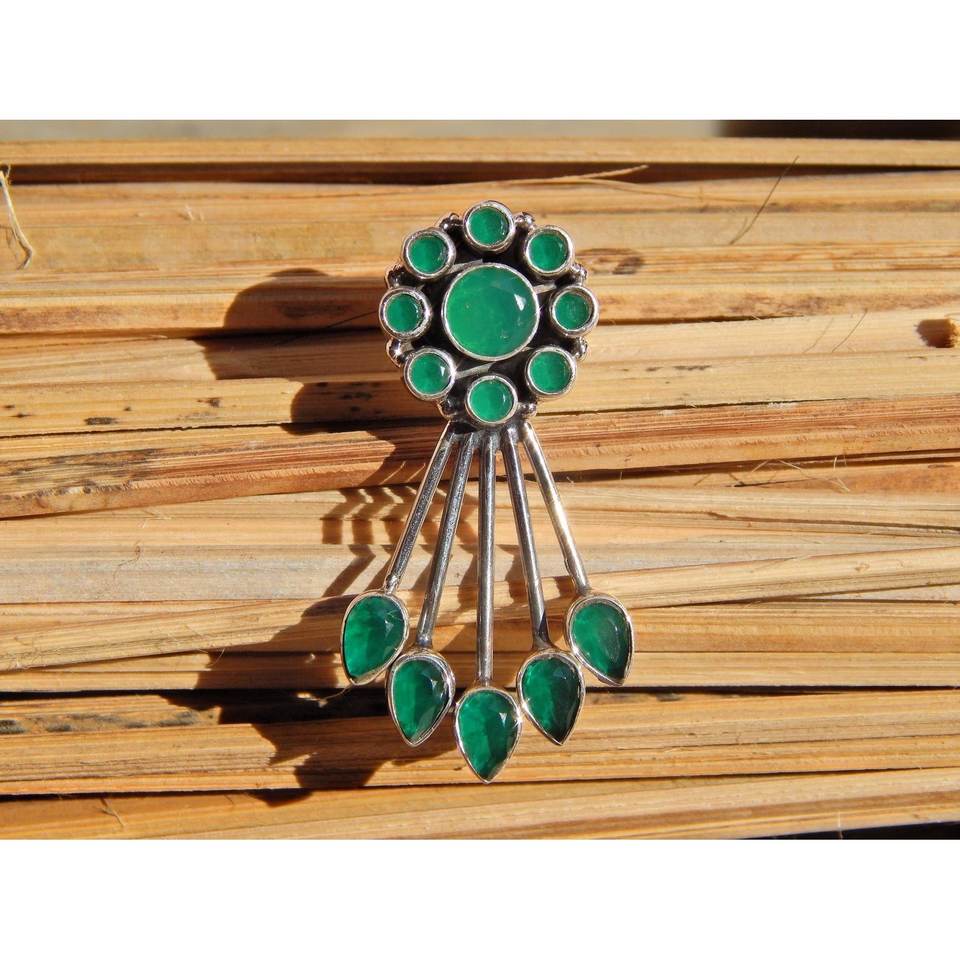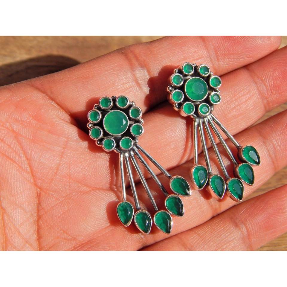Silver & Gold 925k Handmade Earrings with Green Onyx Gemstone Sterling Jewelry Perfect Gift for Women