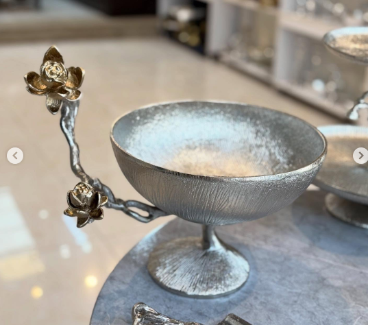 Silver Gold Floral Bowls Trays Tier Stand Dishes and Severs for Cookie and Cakes Fruit Bowls Nut Dishes Serving Trays Dome Cover