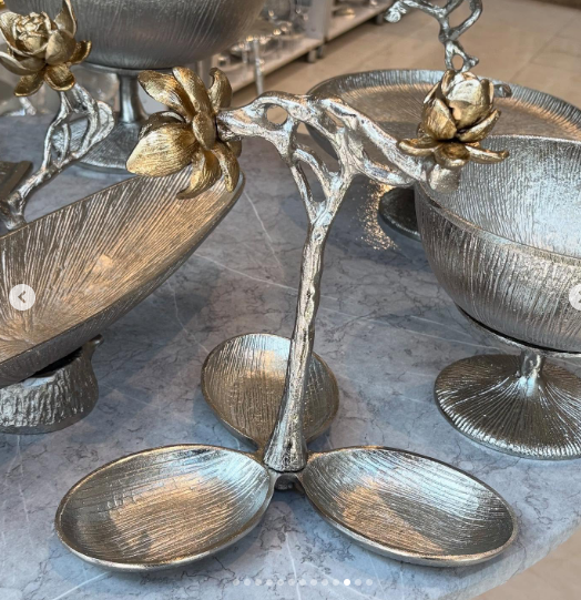 Silver Gold Floral Bowls Trays Tier Stand Dishes and Severs for Cookie and Cakes Fruit Bowls Nut Dishes Serving Trays By Jamsons
