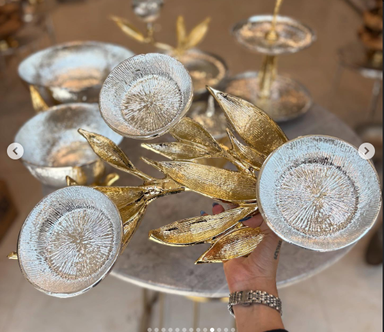 Silver Gold Metal Floral Bowls Trays Tier Stand Dishes Server for Cookie Cakes Fruit Bowls Nut Dishes for Home Decoration Diwali