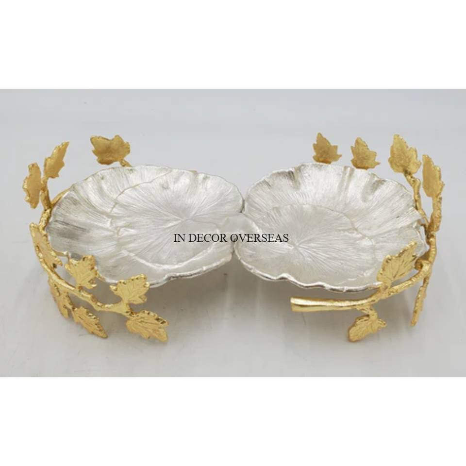 Silver & Gold Plated Round Shape Metal Bowl Shiny Polished & Unique Attractive Serving & Decor Heat Resistant Bird Sitting Bowl