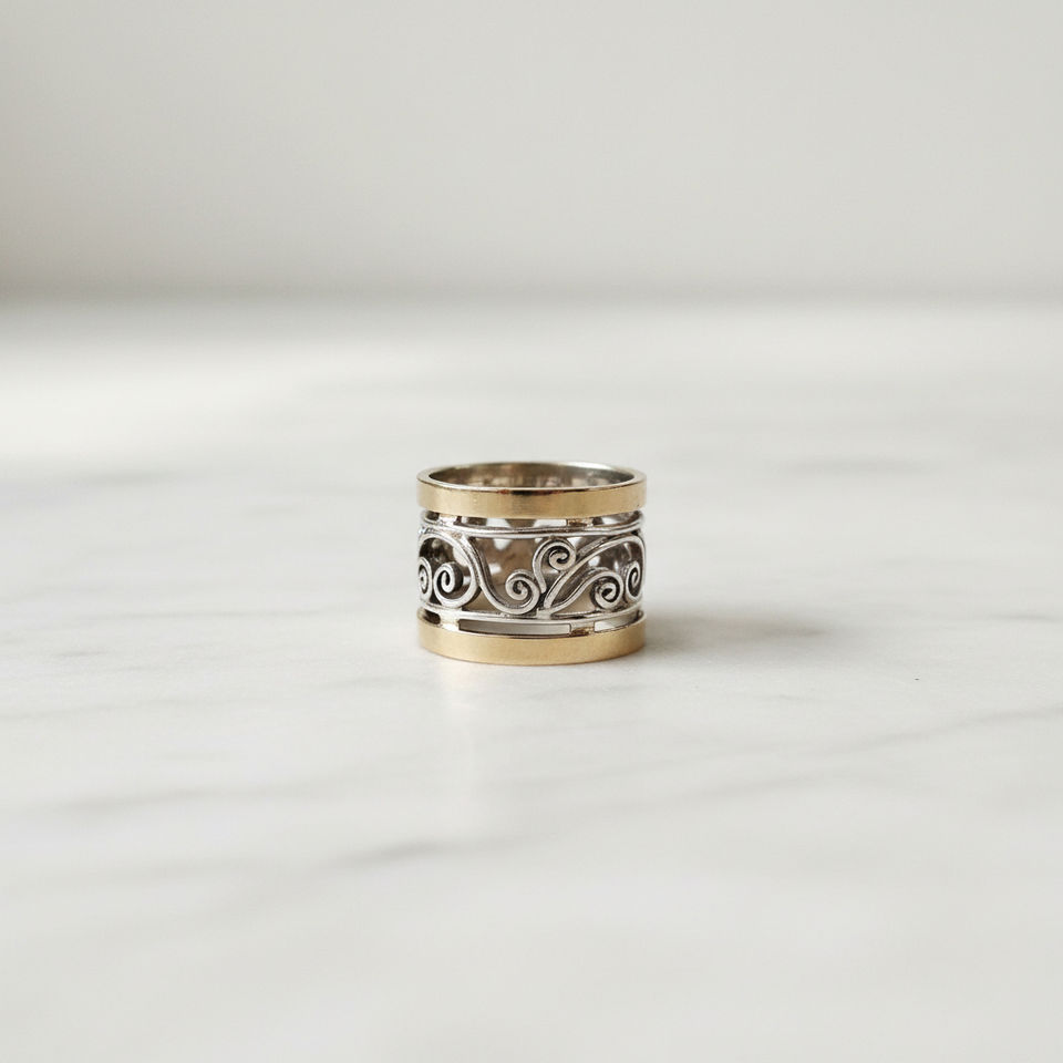 Silver & Gold Plated Swirl Pattern Spinner Ring - Handmade Two-Tone Design